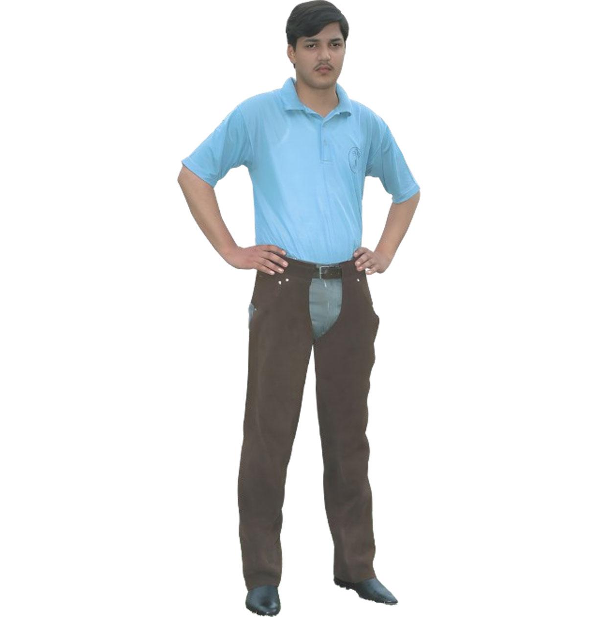 Made from top quality drum dyed suede leather. No joints from the waist to the shoes mean that no uncomfortable stitching behind the thighs or behind the back of the knees. Protection padding on the knees to ensure longer life. Elastication at the outer thighs and a separate belt are the two main features which make this design one of its own kind. Sizes: XS to XL